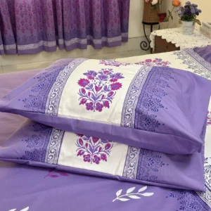 LuxuryLavender Hand Block Printed King Size Cotton Bedsheet Set – 100% Twill Cotton, Customizable