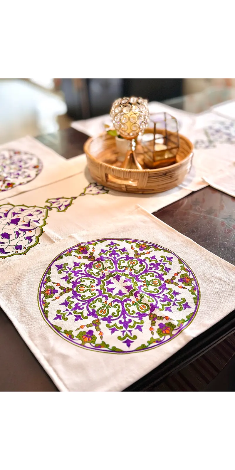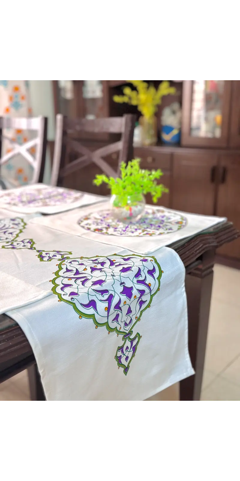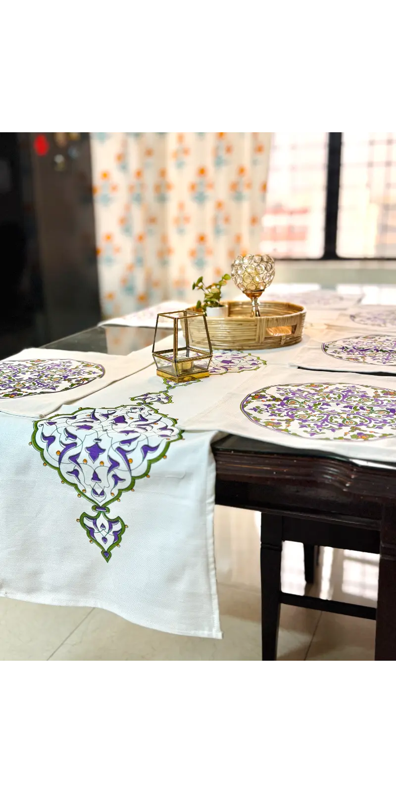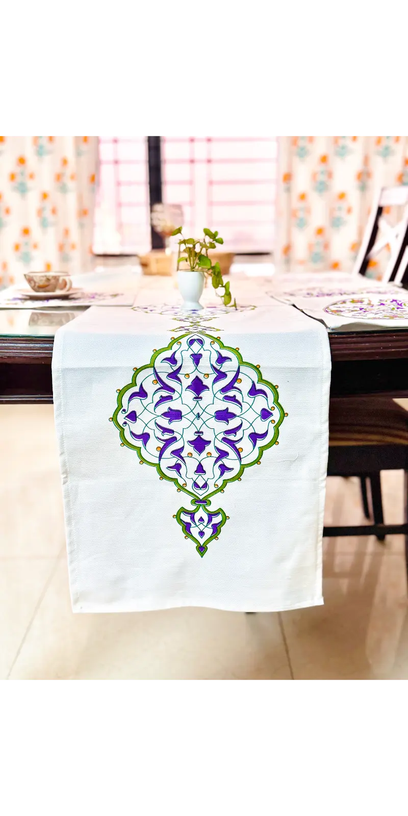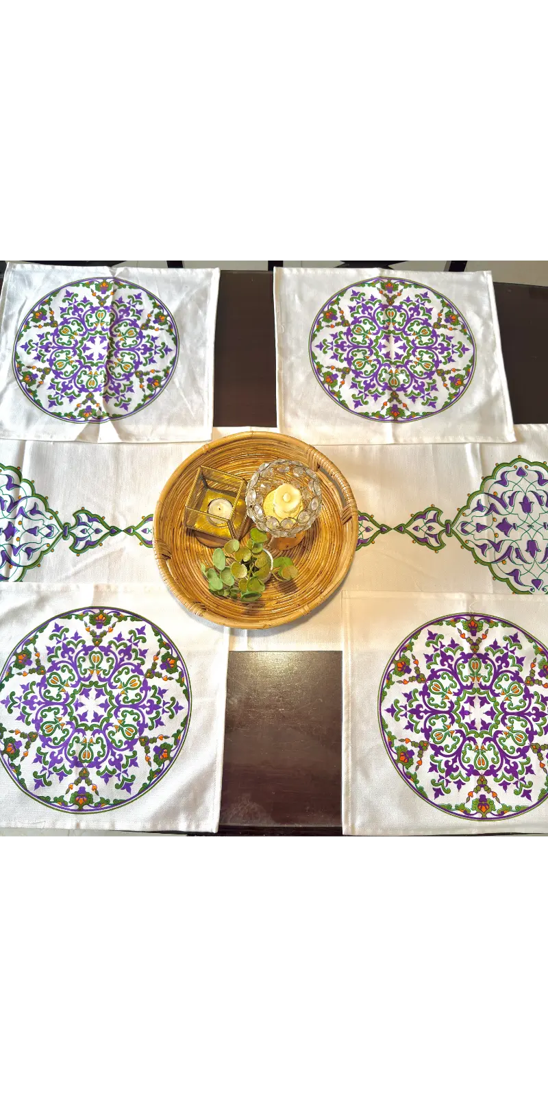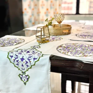 Enhance your dining décor with our premium screen print runner set, crafted from high-quality herringbone cotton fabric. Designed to bring a modern and elegant touch to your dining table, this set is perfect for both everyday use and special occasions.